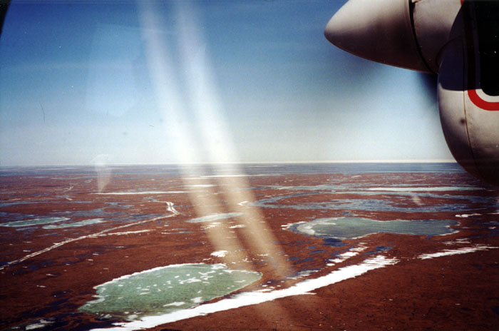 Tundra and Arctic Ocean from Twin Otter June 2000, Flight from Kuparuk to Alpine Pad, North Slope, Alaska