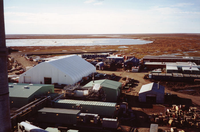 Titan Tent and 300 Man Camp from permanent comm tower June 2000, Alpine Pad, North Slope / Coleville River Delta, Alaska