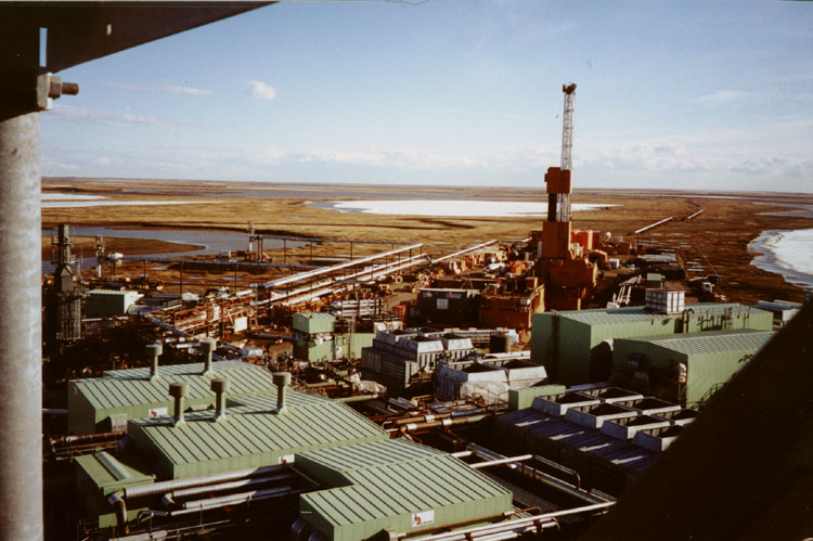 Drill rig and pipeline as seen from permanent comm tower June 2000, Alpine Pad, North Slope / Coleville River Delta, Alaska