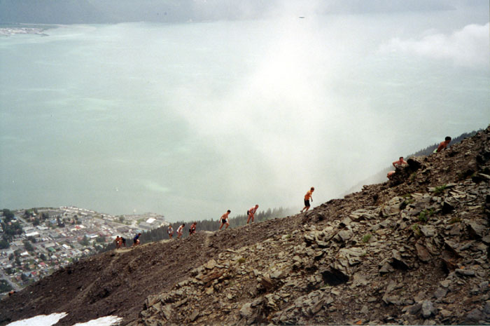 Runners ascending Mt. Marathon